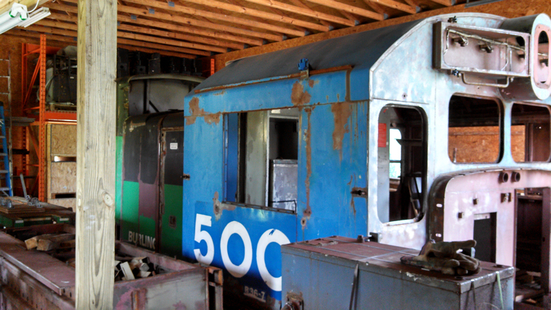 Continuing the saga of Bill Kaufman’s “big move”, we catch up with the Dash-9 cab and other bits as they arrive at Bill’s new home in Alabama. At both ends of the trip, fork lifts proved indispensable for moving the large bits of the cab.