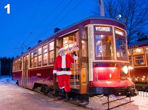 #1: One of the operators, shown here on the steps of the small Peter Witt streetcar, was dressed as Santa.