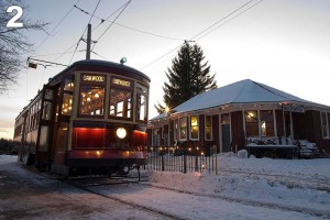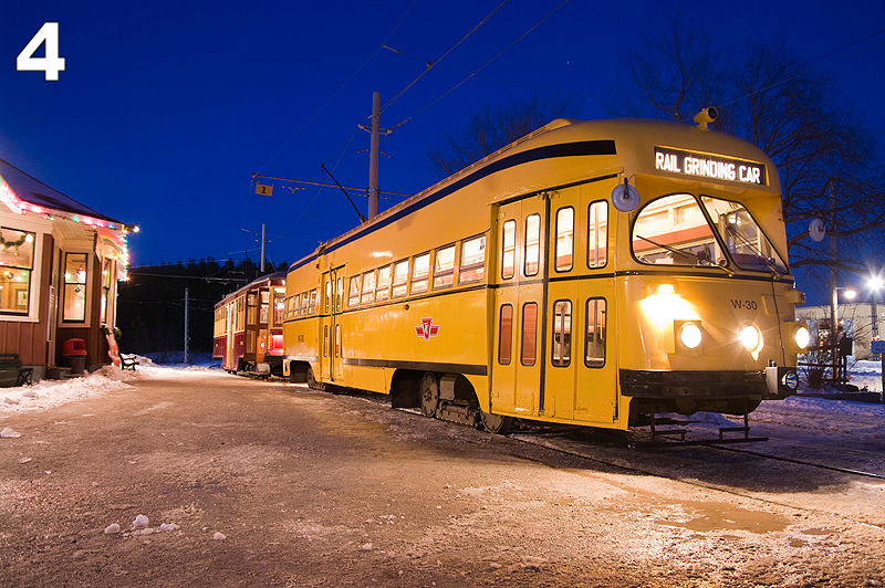 #2: The large Peter Witt streetcar at the Rockwood Station as dusk falls.