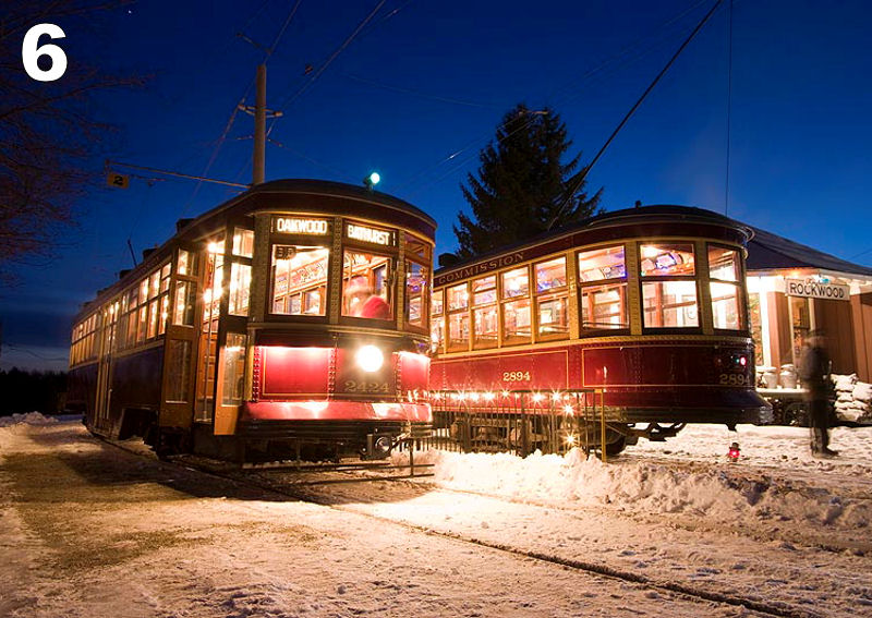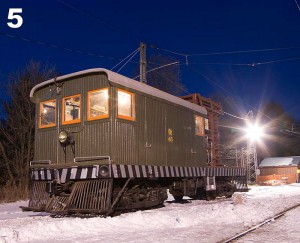 Once again, the Halton County Radial Railway Museum hosted special Christmas trolley trips at their museum last December 5th and 12th from 1:00 p.m. to 9:00 p.m. They are located on Guelph Line a few kilometres north of the 401 Highway in Milton, Ontario. In the pictures here we see some remarkable images of their evening and night operations taken by Stephen Gardiner through the artful use of a powerful flash camera. As they say on their website, “There is nothing like riding the rails through the woods with snow on the trees and singing Christmas carols.”