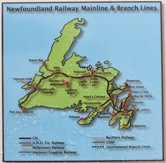 The 42″ narrow gauge railway was born in 1881 and died 107 years later in 1988.  The route across Newfoundland was a tortuous one and there was very little straight track.