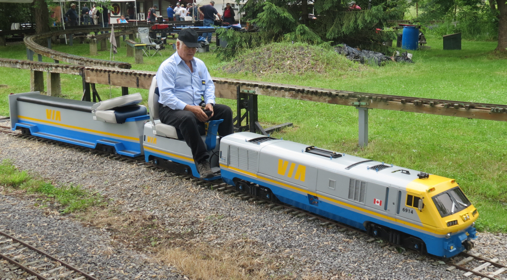 They have traditionally held an International Meet over the July 1st Canada Day weekend.  I had the opportunity to visit them on Saturday, June 30th. The pictures shown here capture some of the fine miniature train sets built by the club members and the visitors.  Visitors came from many of the states in the north east U.S. states as well as from Ontario and elsewhere in Quebec.
