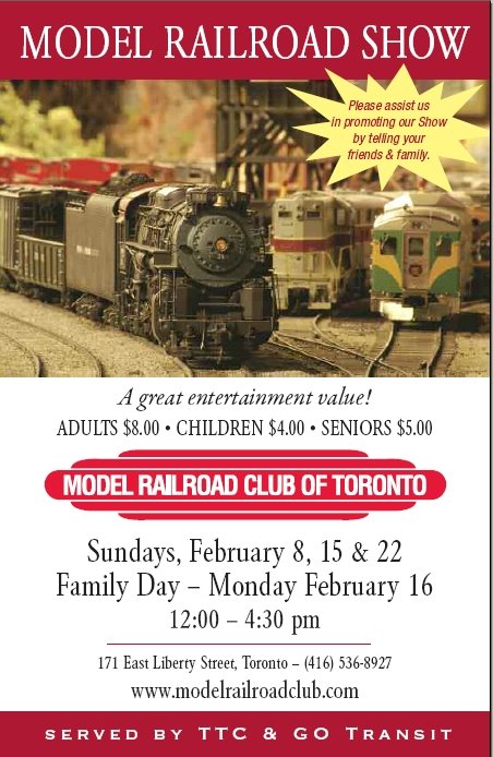 The black and white pictures above are from their Union Station period. The colour pictures above were taken on their current model railroad. As per the above brochure, the Club will be holding open house on Sunday, Feb 15th, Monday, Feb 16th (Family Day) and Sunday, Feb 22nd. Take the opportunity to visit their comprehensive website for more information about the club, their history and the Open House events.