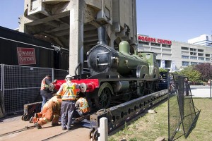 With the successful conclusion of the Railway Children production the heritage train set consisting of the Adams T3 4-4-0 steam engine and the Director’s Carriage were loaded onto truck transports this past week and will subsequently be taken by train to the east coast and then by boat back to the National Railway Museum in the United Kingdom.