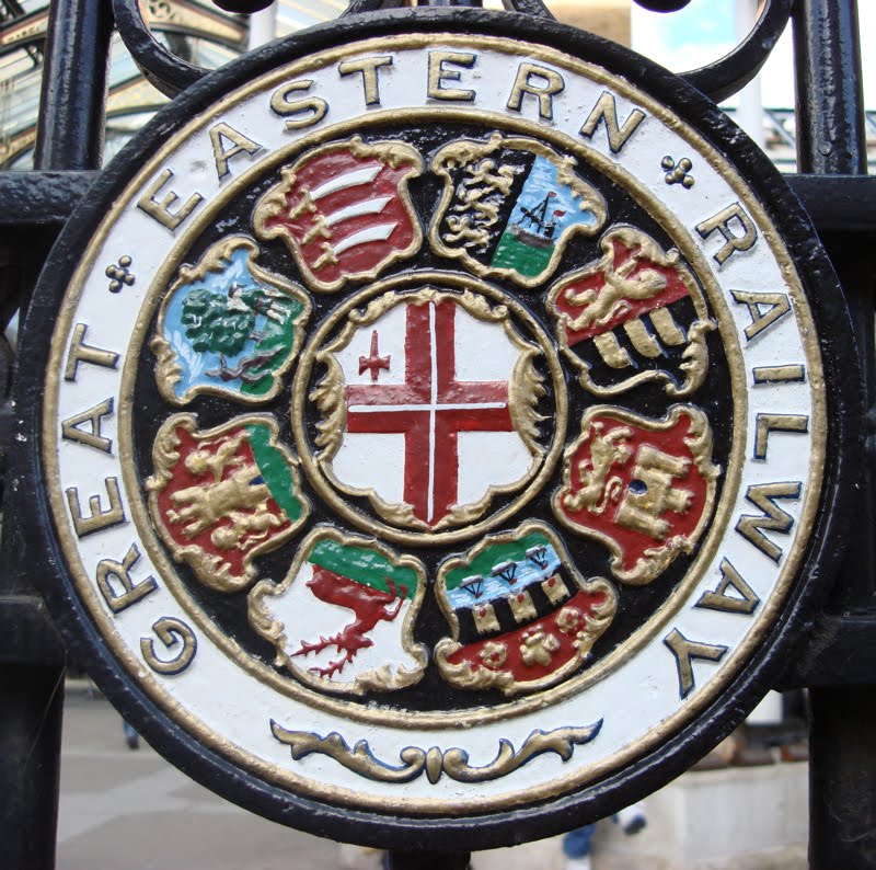 In the images included here from Wikipedia, we find the shield of the Great Eastern Railway, the Great Eastern Railway T26 steam engine #490, Henry Thornton and Liverpool Street Station.