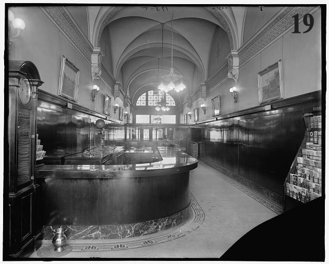 Was it at this time that the Henke’s family friend acquired the print? In his capacity working for the state liquor commission, he certainly would have visited Detroit’s first legal bar, which would have had no interest in displaying a large and bulky leftover advertisement for an Ottawa hotel. There are two very low-resolution images showing the interior of the Grand Trunk ticket office around World War I and one can make out several framed prints hung above the wainscoting. (IMAGES # 19 & 20) Perhaps our print is one of them.