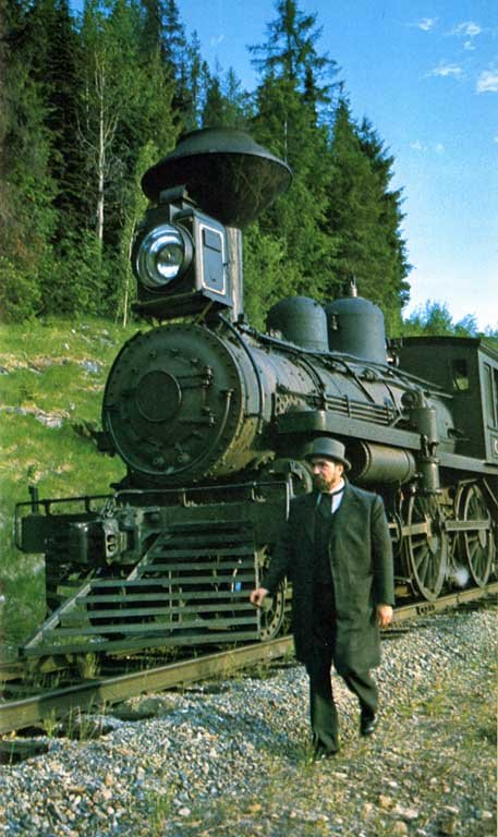 In the picture at the far left we see actors William Hutt (Left) as Prime Minister John A. Macdonald and Joseph Shaw (Right) as CPR President George Stephen. In the picture at the left, we see actor John Colicos as CPR General Manager William Cornelius Van Horne with #136. Click on each picture for a closer look!