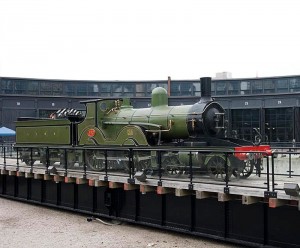 After the introduction of the #563 on the public address system, the two “secret service” agents opened the door and allowed #563 to run out onto the turntable (pushed out by TRHC No.1). After #563 reached the centre of the turntable, No.1 returned to the inside of the stalls for the duration of the event. #563 then went for a spin on the turntable, with the turntable being opened up to allow assembled media to hold interviews from the footplate with the show’s director and producer.