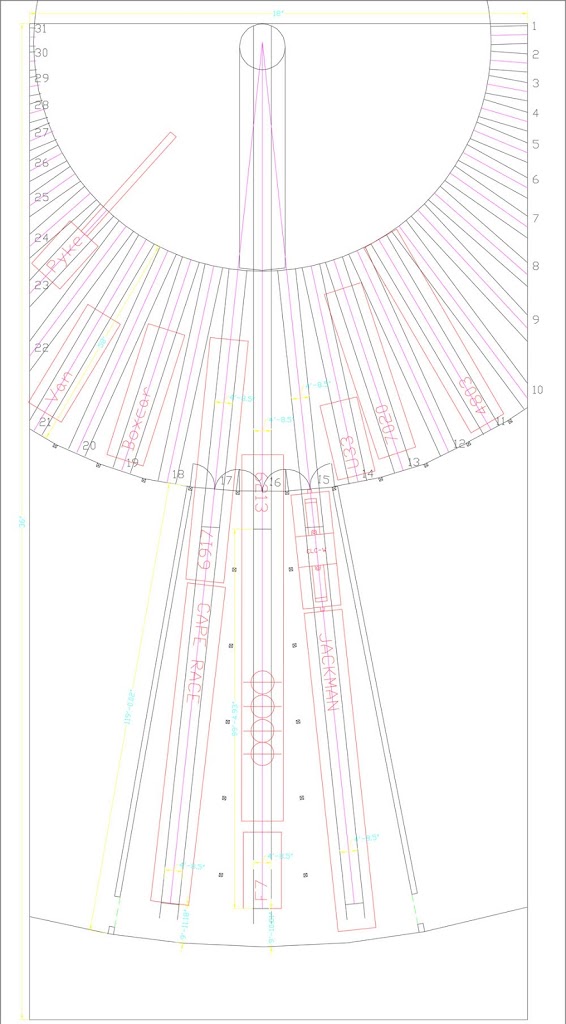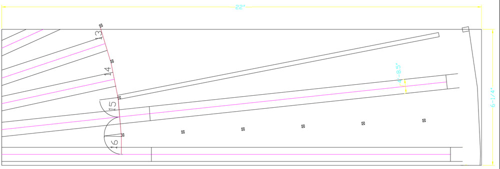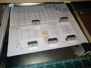 As part of the process of working on the models, over the past couple of years, I’ve been working on finding a way to display the models both in my apartment, at the museum, and at shows when the TRM is in attendance. As can be seen, even including ½ the Turntable requires a model that is 18” by 36”, which is a significant amount of space to try and fit into an apartment, and bigger than can reasonably be constructed working in an apartment workspace (Image 1 – Original Concept). Inspiration however, came from an unexpected source, looking at the bookcases in our apartment, it became apparent that a readily available shelf would provide enough room to model two stalls and a portion of the patio big enough to display equipment on (and make it easily stored in a bookcase when not in use!). A $5.00 Ikea Inreda 22”x6-¼” bookshelf became the base of a revised plan (Image 2 – Ikea Shelf design).