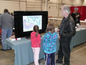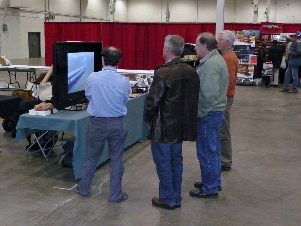 With other competing events this weekend, notably the Santa Claus Parade, attendance was a bit sparse this year, especially on Sunday. However, there were a great number of visitors who came by the table, engaged us in conversation and watched the entire presentation on the monitor. I think it fair to say that we were one of the more popular hits at this year’s Christmas Train Show. As always we express our appreciation to show organizer Doug Jarvis for giving us the space for our table and display.