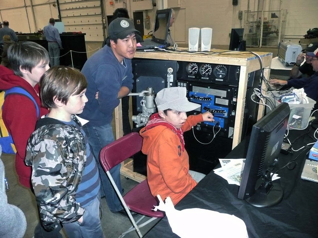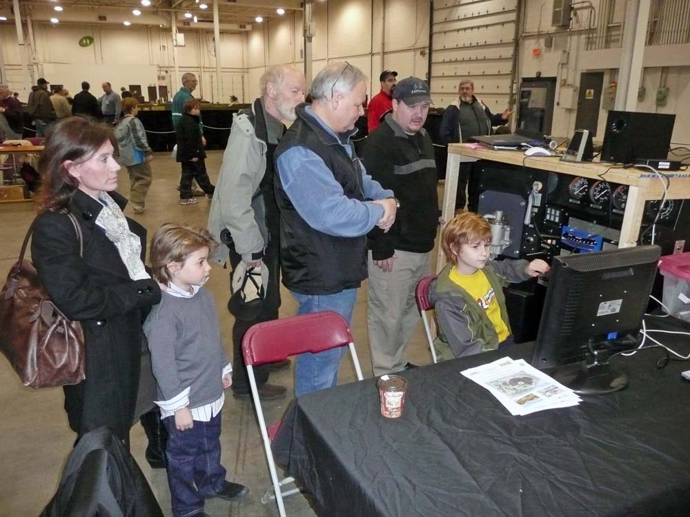 In the images in the middle below and at the right below, we find photos of some of the many visitors who enjoyed operating our TRHA diesel-electric locomotive simulator which was making its first excursion away from the roundhouse.