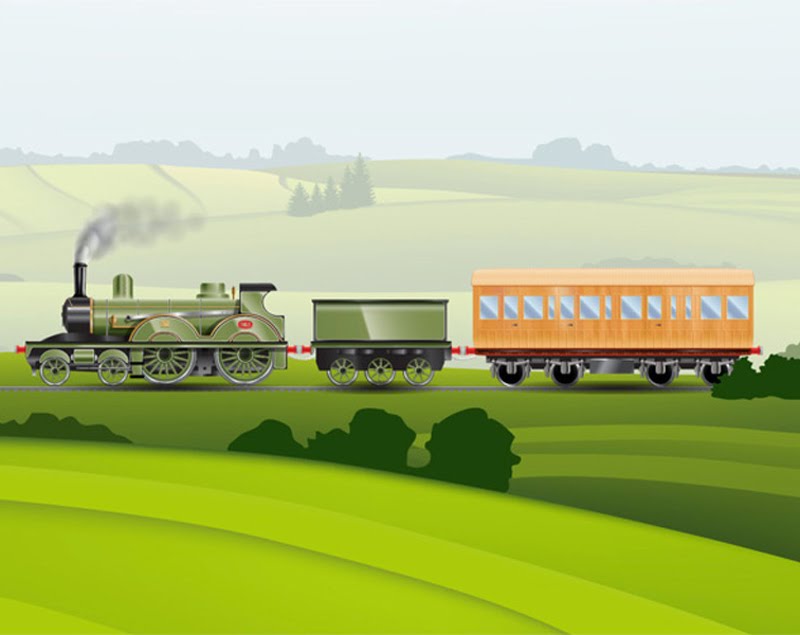 - Drawings of the engine, tender and carriage for kids to colour