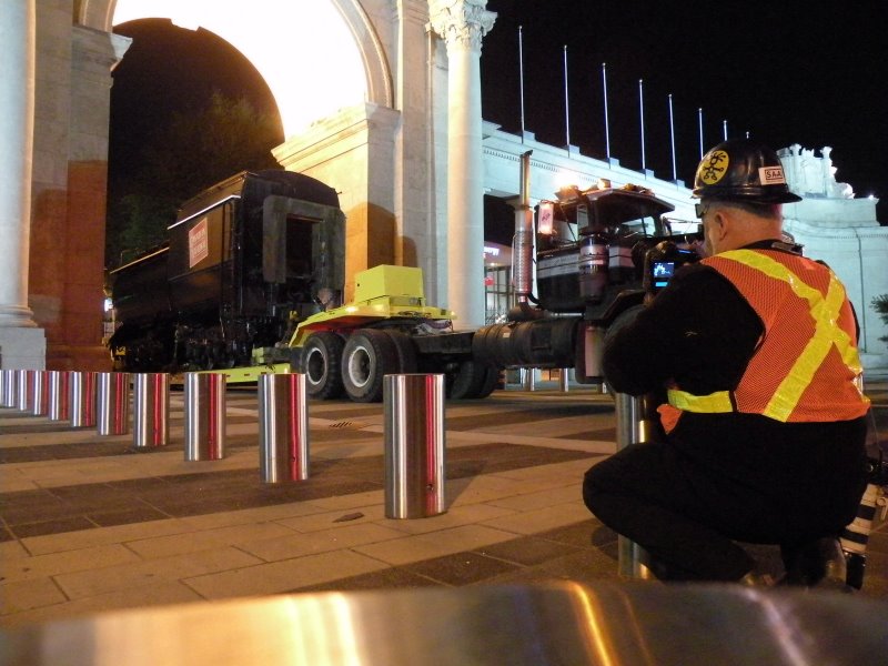6213’s tender was successfully moved last night. It moved through the Princes’ Gate at about 1:50 a.m. and arrived at the roundhouse on schedule at about 02:45 a.m. After that things got a little slow and we did not have it free from the mover’s tow hook until about 06:20 a.m.