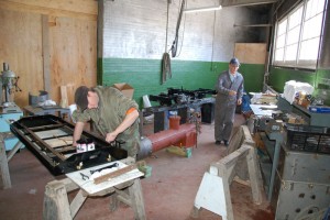 The power box for the speeder car drumhead was painted bright yellow as we see in the picture above. Jon continued to paint components of the miniature locomotive while Arno focussed on reassembling the locomotive as shown in the above picture.