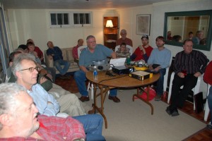 Last Friday was “film and slide night” for the TRHA crews and a delightful evening was spent nourishing ourselves in body and spirit as we drank, munched and watched a series of slide presentations presented by Derek Boles (see in the photo above) and other TRHA members. But the star of the show was some very rare movie footage of the 1939 Royal Tour train which recently came to the attention of the Culture Division of the City of Toronto.