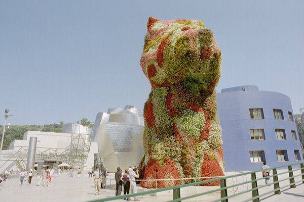A giant Jeff Koons puppy (see image below) might be cute and bring smiles to the faces of thousands of people, but a giant train hanging from a crane probably won’t do much for people – other than confuse them and make them think that all art sucks.