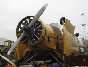 Early in the fall of 2008, the TRHA was made aware of a supply of small size rail suitable for use in the building of our miniature railway in Roundhouse Park. So we made the trek to Brantford to visit the recycling company who were offering this rail for sale. The recycler had a fascinating collection of old engines and other recyclables which captured our interest as well including a crop dusting airplane as shown in the picture at the above left.