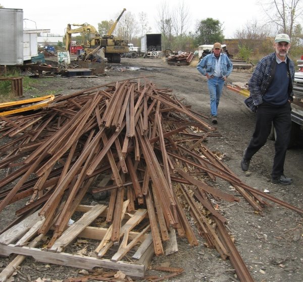 However, we finally focused on the task in hand and examined the rail. As shown in the other two pictures the rail was in good shape and consisted of a roughly equal quantity of 1 1/2″ high (8 pounds per yard) rail and 2″ high (10 pounds per yard) rail. The rail was formerly used by the Conklin amusement ride company. Subsequent to the visit, we agreed to purchase the rail at an attractive price.