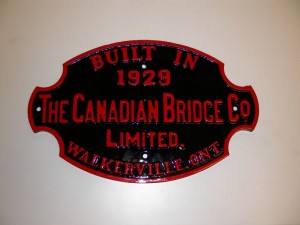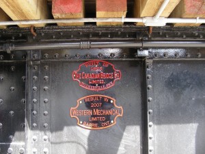 As shown in the right hand picture, TRHA has commissioned the production of a pair of Builder’s Plates in aluminum for our CLC Whitcomb switcher which was a product of the Canadian Locomotive Company in Kingston in 1950.