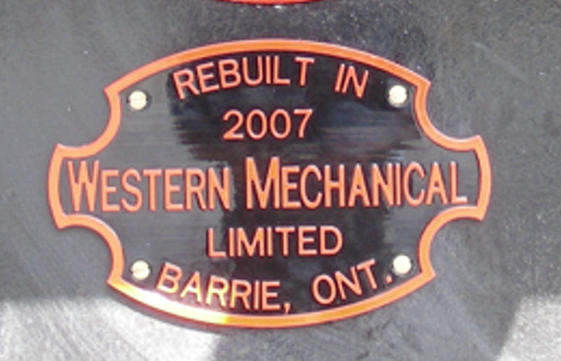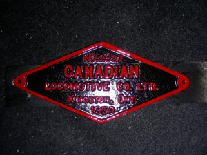 As shown in the right hand picture, TRHA has commissioned the production of a pair of Builder’s Plates in aluminum for our CLC Whitcomb switcher which was a product of the Canadian Locomotive Company in Kingston in 1950.