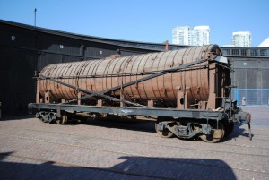 In the images below, we find the Pyke Crane positioned outside the roundhouse beside #7020 to allow for expanded visitor access to the three stalls inside. The vinegar tank car was also unwrapped and put on display outside on one of the approach tacks to the roundhouse. Finally, we find the U33C diesel cab simulator positioned in front of the F7 Cab (not visible) ready to greet visitors to the museum.