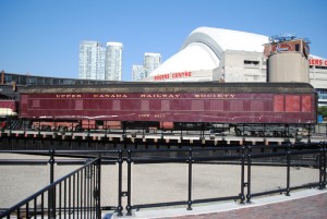 As the day before the grand opening came to a close, last minute preparations were being completed in readiness for the Official Opening on Friday! Above we see the interior of the caboose being painted now that the tongue and groove siding has been applied to the interior. In the next picture, we see our GP7 #4803 parked next to CNR Northern #6213 providing an interesting contrast between steam and diesel-electric motive power. On the turntable, Cape Race has been uncovered and rests awaiting movement into the roundhouse where the Jackman and Cape Race passenger cars will occupy the two outside stalls with the full size simulators positioned at the end of the middle track.