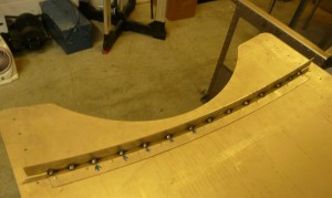 Now that the Burlington based team has completed their work on the steam engine’s tender, they have been working on assembling the cab which is now almost nearly complete. In the above pictures we find Pat in action fastening the cab sides to spectacle plate. This work should be finished tomorrow. At that time, the tender and the cab will be sent out for painting using a powder coating process.