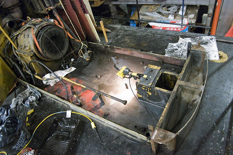 “Michael Guy and I completed scraping and cleaning out as much of the accumulated sludge in the #1’s engine bay as we could. Then we moved on to preparing it for paint, wiping down the surfaces and cutting away some un-needed brackets and mounts within the engine bay to make future maintenance easier when the engine is re-installed. The cleaned engine bay is shown in the image at the upper left.