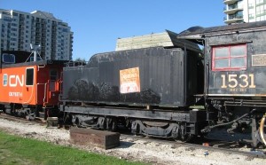 The train set had to be moved to make way for sewer construction which is currently underway at the site. It was decided that the most appropriate move would be to the Simcoe County Museum. Moving the locomotive isn’t straightforward, as the engine’s boiler jacket and some piping insulation contain asbestos. The cost to remove the asbestos is expected to cost $75,000, while the cost to move the engine is estimated at $89,000.