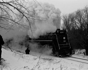 The photos of CNR Northern 4-8-4 #6218, a sister locomotive to our #6213 above were taken by John Vincent back in the 1960’s. In the picture at left we find #6218 in repose in January of 1966 in the CNR roundhouse just west of our CPR roundhouse. The other three pictures show #6218 pulling an excursion train in February of 1967. I personally remember these excursions as really exciting adventures. Click on each picture for a closer look!