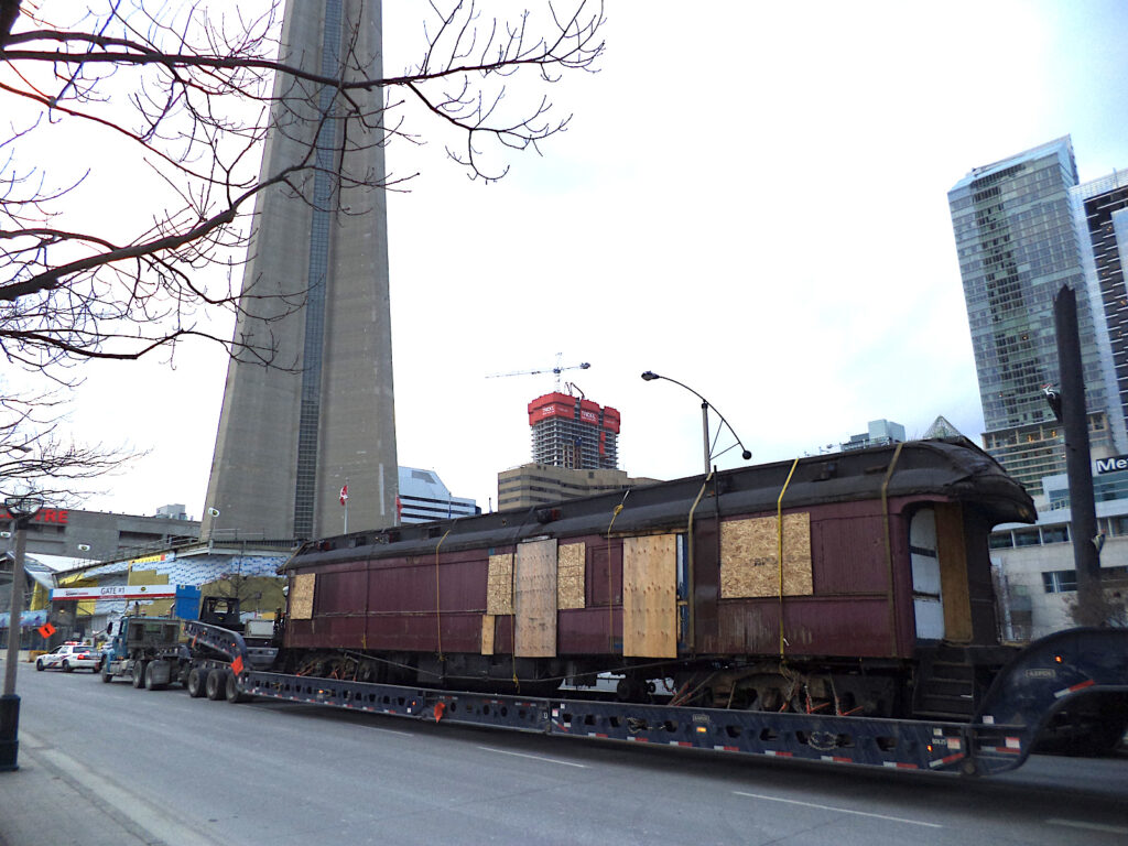 After the restaurant closed in 2010 all eight passenger cars in its collection came under ownership of the City of Orillia, who sold them to private interests. One of these interests offered Nova Scotia to the Toronto Railway Museum and to cover part of the costs of delivering it there. The TRHA completed two thorough inspections of the car, one of the exterior and another of the interior and found it worthy of preservation. It was acquired and transported by truck to the museum shortly thereafter. It was moved inside the roundhouse to avoid exposing it to the elements any further but efforts to restore it were slow over the following years. The interior was used as office space by museum volunteers and staff until somewhat recently. Restoration of Nova Scotia ramped up towards the end of the 2010’s and approximately 1/3 of the car’s interior was restored in time to be used for a special display on Remembrance Day 2019. Further restoration of the interior has similarly occurred in stages. Our volunteers have found traces of the original Dominion Atlantic Railway paint and damage from the Halifax Explosion on parts of Nova Scotia.
