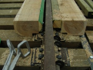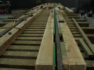 Today the re-cut timbers were returned from the mill and PNR resumed work on the deck installation. The deck is white oak made seven inches thick to bring the walking surface up to rail-head level. Deck completion is expected this weekend.
