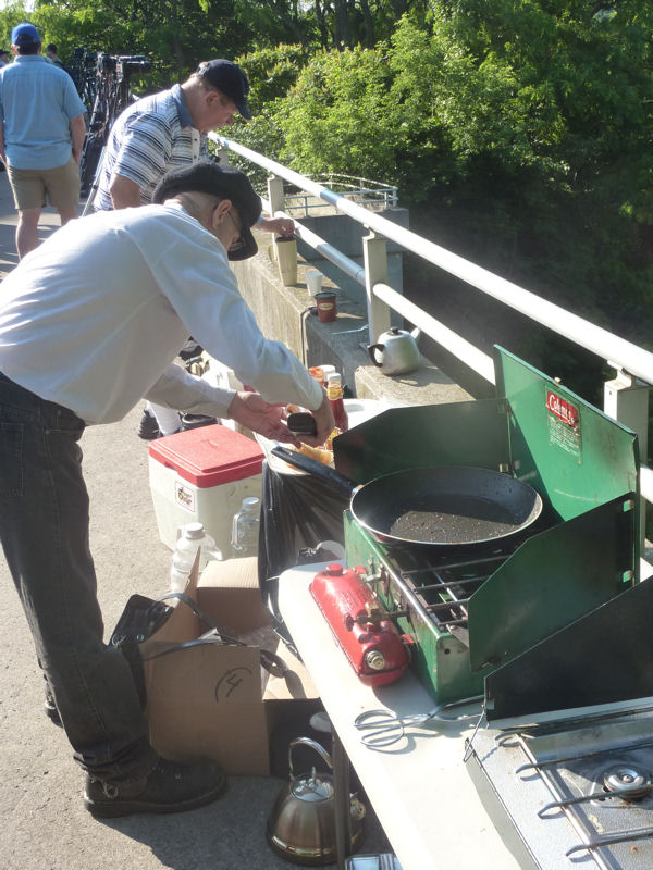 CRHA Niagara has tradition of organizing a dusk to dawn railfanning expedition on a day close to the Spring equinox, the longest day of the year. I was able to join them this year (unfortunately) only for the first hour or so of their great expedition. The attached pictures were taken at Bayview Junction, perhaps the premier train viewing location in Ontario. This year, they began their journey by cooking a breakfast for all attending. While I was there, we did capture for posterity a VIA train passing by. As I left, I noticed that one of the crew was quite serious in their railfanning with their van being suitably lettered for the task as seen in the attached picture.