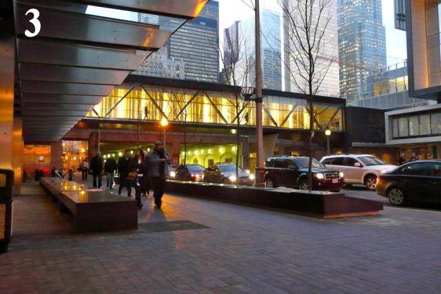 This bridge over York Street connects the the PWC Tower with Telus House and is an extension of the PATH system. The Lake Light Threshold is an art installation on the north side of the bridge that opened in February 2012. It will be interesting to see if this PATH extension will provide a practical indoor route between Union Station and Roundhouse Park. Pedestrians moving across the bridge experience an interesting play of light from the art installation created by New York artist James Carpenter, who is also involved with 7 World Trade Center and Moynihan Station, the new Manhattan Amtrak station.