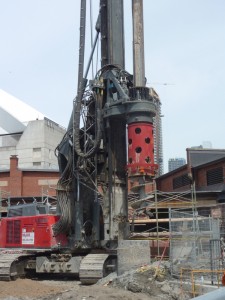 | Drilling large holes behind Leon’s |