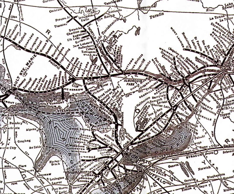 The map above shows the CPR line that Mr. Michaelis would have worked while wearing these uniforms. Cartier is west of Sudbury at the end of the double track section. Mactier is 130 miles north of Toronto.