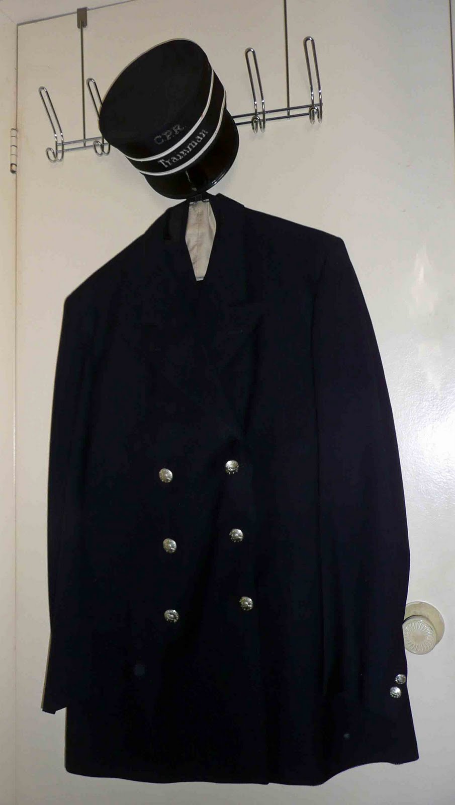 I recently received a call from a Mr. Tim Irish, who advised that he had two authentic Canadian Pacific Railway trainman’s uniforms and he wanted to find them both a good home. After a brief conversation, he agreed to donate the uniforms to the Toronto Railway Heritage Centre. It turns out that Tim is Sergeant Tim Irish of the Toronto Police Service Forensic Identification Services and we can certainly appreciate his sensitivity in not immediately identifying himself during a cold call on the telephone.