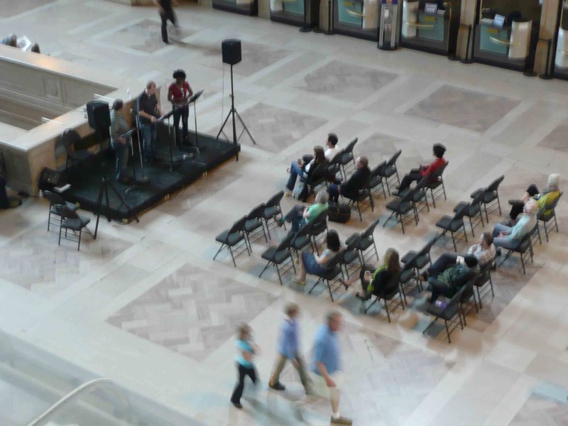 As reported earlier, the Diaspora Dialogues presented some fiction and poetry readings as well as several dramatic presentations in the east end of the Great Hall. The Diaspora presentations were thematically linked with Union Station or people in transit.