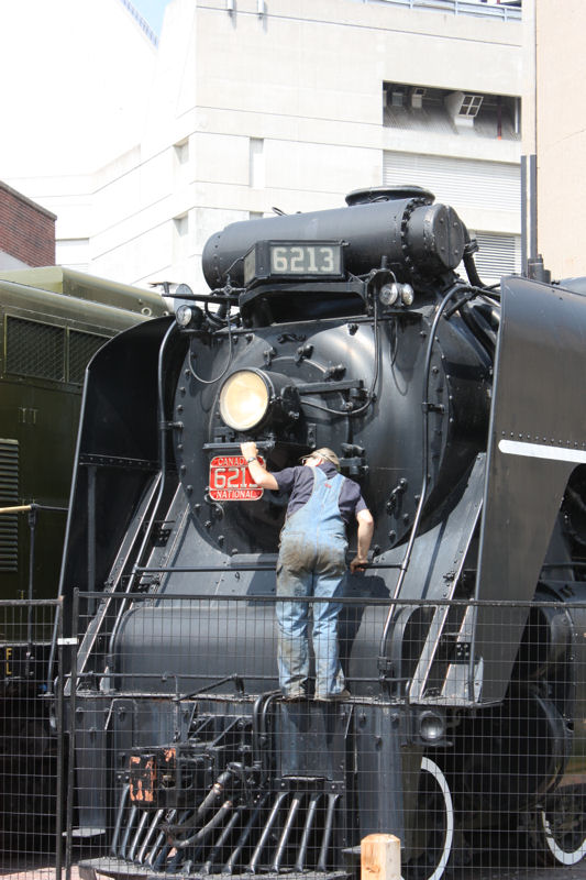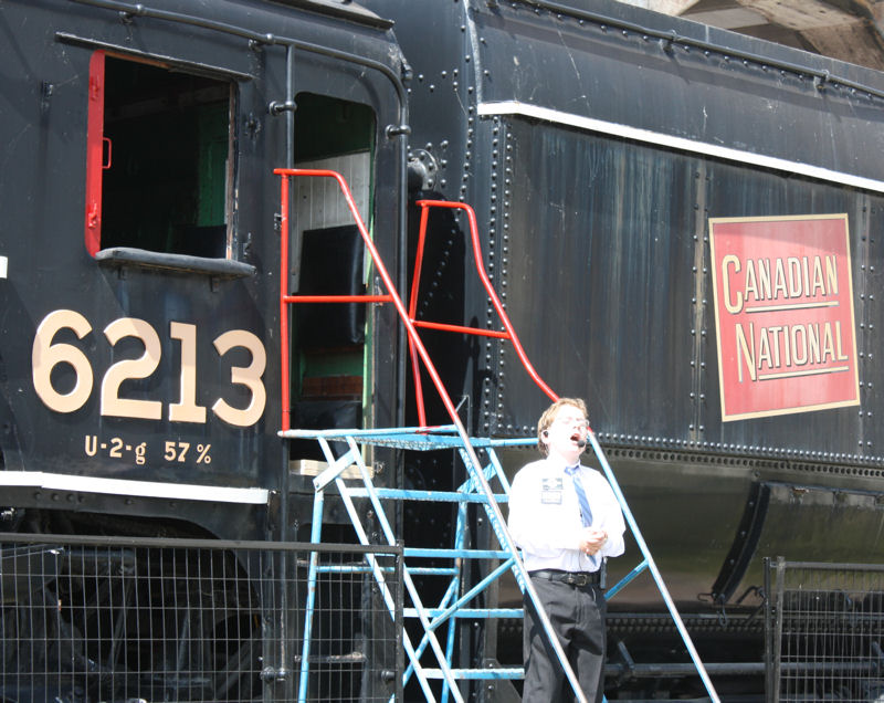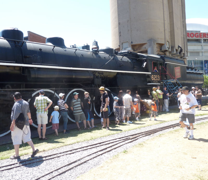 Continuing with our coverage of the May 29th and 30th opening weekend of the Toronto Railway Heritage Centre (TRHC), we turn our attention to the activities surrounding our CNR Northern 4-8-4 Steam Locomotive #6213 in Roundhouse Park. #6213’s story is told elsewhere on our website.