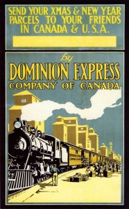 Today when we think of express, companies like FedEx, Purolator and UPS immediately spring to mind but until the mid-20th century the parcel delivery business was a virtual monopoly operated by the railway companies. The Dominion Express Company was incorporated in Winnipeg in 1873 and taken over by the Canadian Pacific Railway in 1884, when the headquarters were moved to Toronto. The company provided the first all-Canadian express route between Eastern and Western Canada.