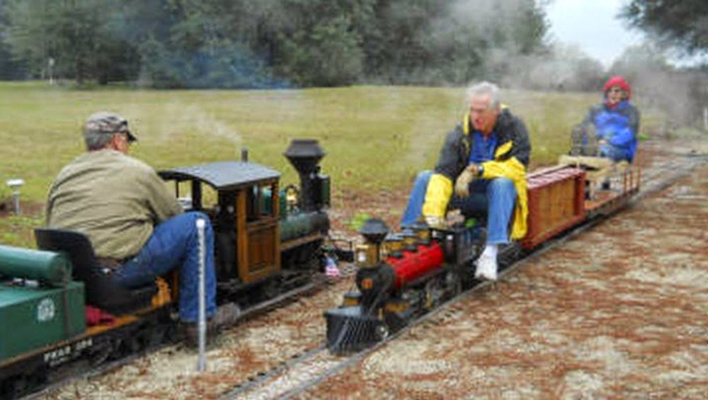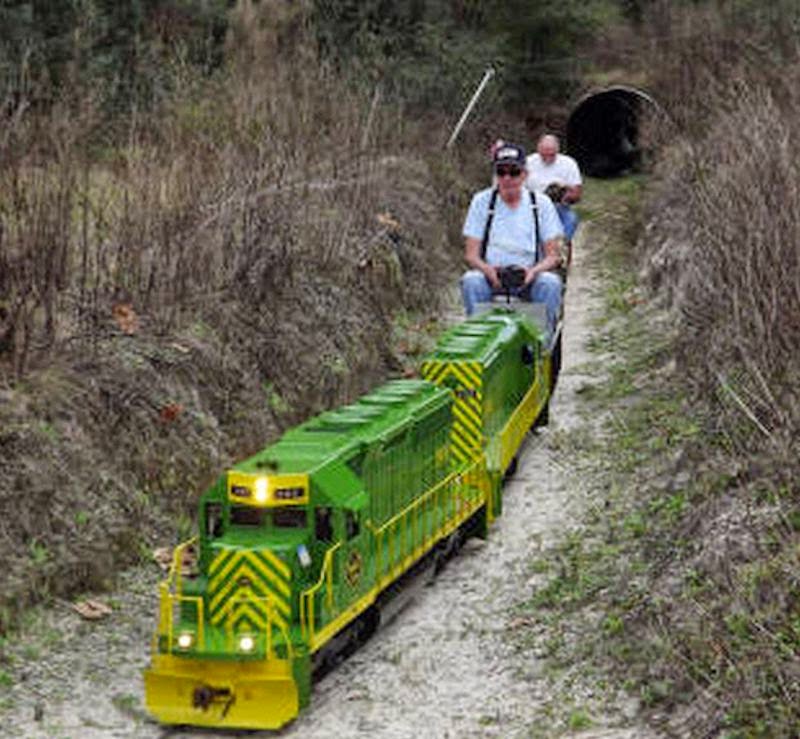 Michael Guy is currently away on his annual expedition to Florida where he makes weekend visits to local miniature railways with his small electric locomotive. This past weekend he visited the Big Boots and Western Railway which features over 3 miles of track configured as shown in the track plan below. The first two images below are by Michael while the others are from the BB&W RR website where there are many more images for you to enjoy. Note that miniature railway enthusiasts down south like to build and operate complete scale freight train sets.