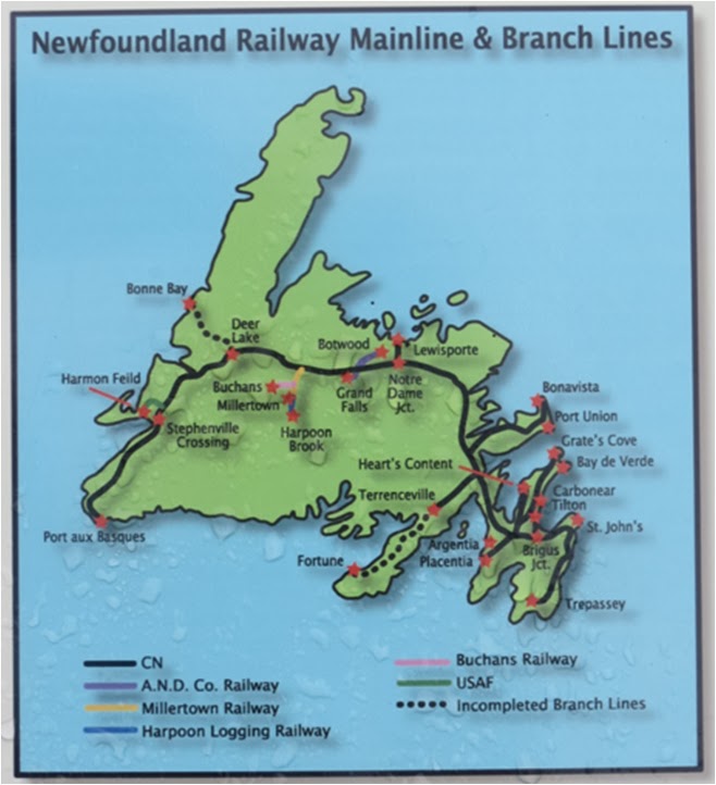 The Newfoundland railway system was born in 1881 and died in 1988, aged 107!  It was built as a private venture by the Reid Newfoundland Company and nationalized by Britain in 1923 as Newfoundland went bankrupt and became a colony again. It was then taken over by the CNR in 1949 with Confederation when Canada joined Newfoundland as the locals like to suggest.  It struggled to survive for most of its life and its survival was a tribute to the dedication and commitment of those who managed and worked on the railway.