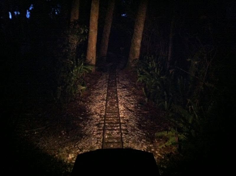 “It goes dark here at 7 pm! Although no alligators have been seen it is reported as fact that coyotes have been responsible for the deaths of a couple of local house cats lately. Those of us who took trains out after sunset today kept a sharp eye on the Florida jungle just in case.