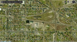 2. Aerial View: This view is a few months old. The Rail Fan Park is in the centre about 1/3 from the right, just an empty field after the derelict buildings cleared out. The Rail Tavern is at the centre far left side. Click here to view the area more closely using Bing Maps.