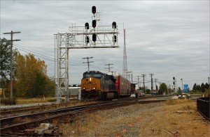 4. Round the Bend: A CSX train takes the sharp bend heading Northbound with the new Rail Fan Park on the right.
