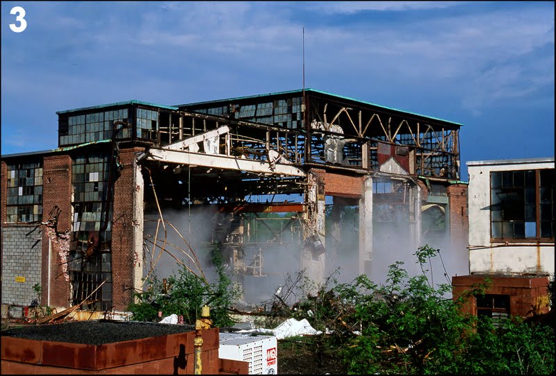 “I was traveling from the Boston area to back home mid Friday afternoon, and elected to break the drive up by spending Friday night in Albany, NY. I’d never been to the site of the American Locomotive Company in Schenectady, so decided to look it up on Google to determine the location, and visit it on the morning of Saturday, May 21st, 2011. Imagine my surprise as I was the only witness that morning to photograph a significant piece of locomotive history being demolished. This is the site where the Union Pacific “Big Boys” were built from 1941 to 1944, perhaps in these buildings.