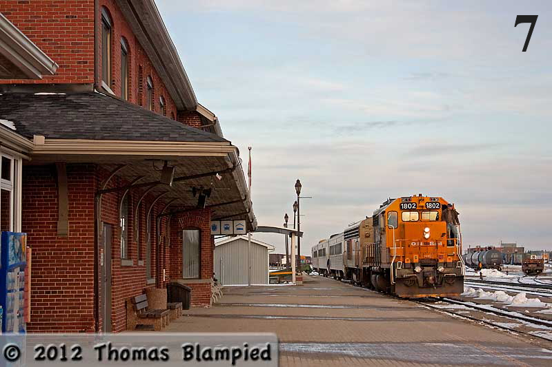 #7: GP38-2 #1802 arrives at Cochrane with the ‘Northlander’ from Toronto.