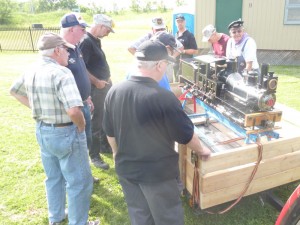 There were probably more than a dozen engines running at the event. We spent the afternoon operating the trains catching up with each other. We then feasted on hot dogs and hamburgers and salads at the supper time barbeque. After a brief bit of club business, we resumed railway operations and operated until almost sundown.