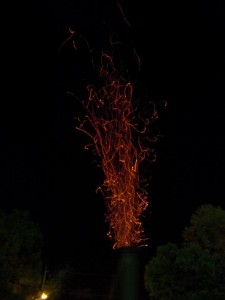 For part of the four day event, the tractor was also used to power a sawmill through the use of a long belt as shown in the photos below. Throughout the weekend there were demonstrations underway of the sawmill in operation. In the final photo at the lower right, we see a shot of the traditional “spark shows’ put on by the steam tractor operators each evening.