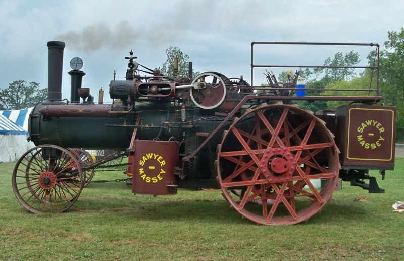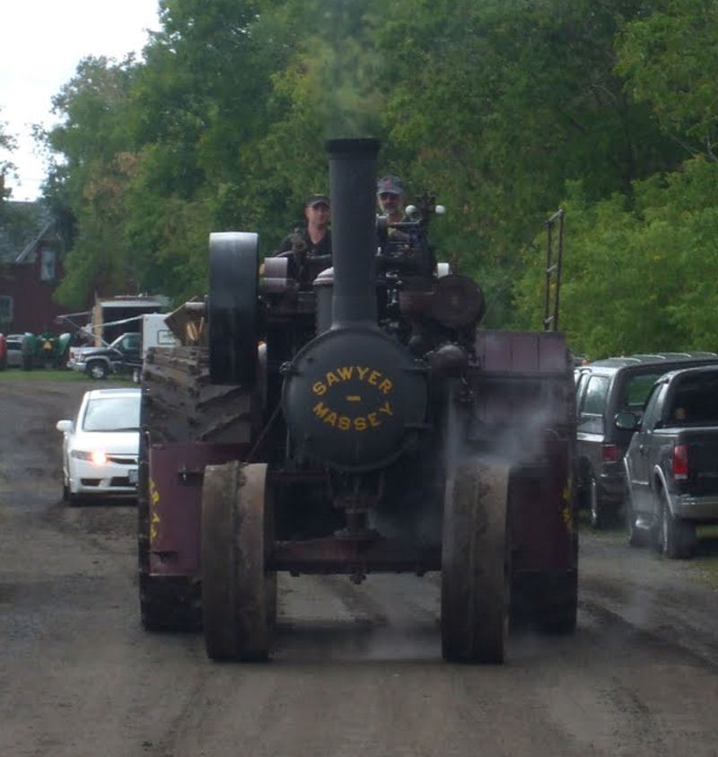 As noted in our last TRHA News posting, an intrepid crew of TRHA volunteers led by Michael Guy attended the Milton Steam Era event where they operated the massive steam tractor shown at the upper left photo. At the upper right, we find Michael and Jon enjoying a fine meal cooked in the smokebox of the steam tractor. In the middle photo above, we find the tractor in operation traveling around the grounds. At any one moment during the event, one could find a number of these steam tractors in operation on the grounds, often pulling wagon loads of happy visitors.